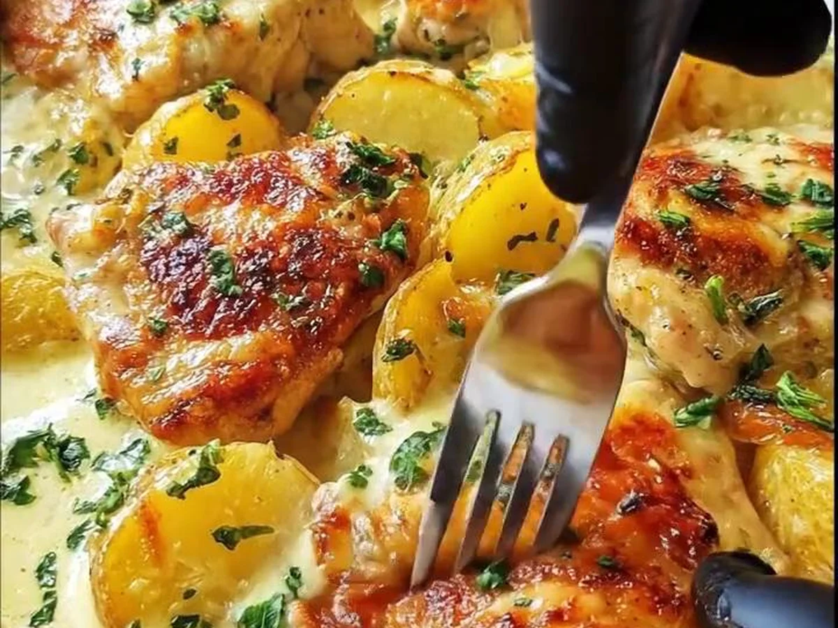 Poulet Rôti aux Pommes de Terre en Sauce au Fromage Le Poulet Rôti aux Pommes de Terre en Sauce au Fromage est bien plus qu’un simple plat ; c’est une