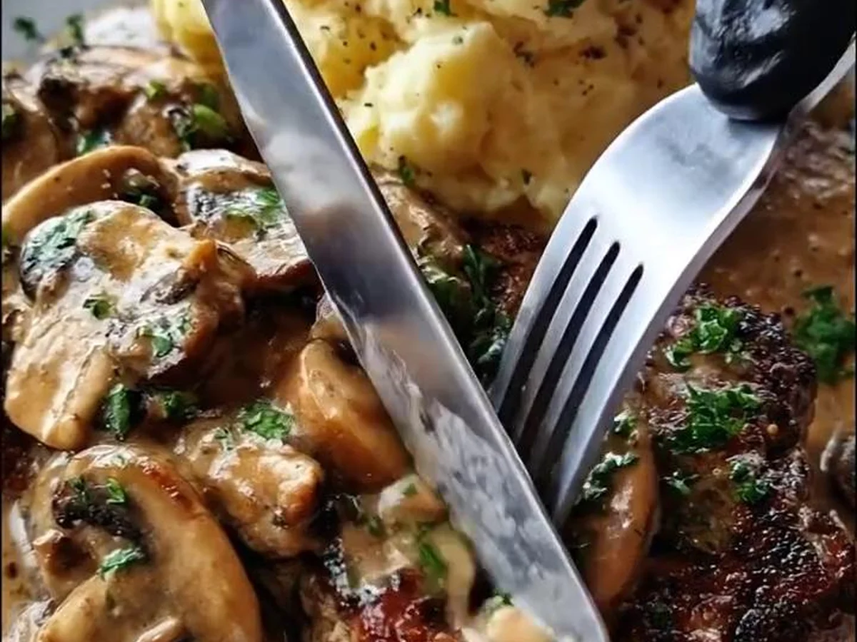 Boeuf aux Champignons avec Purée de Pommes de Terre