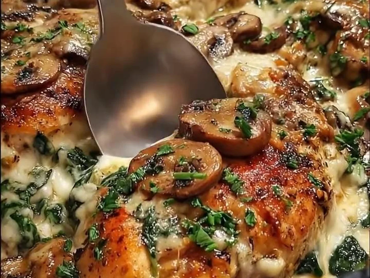 Gratin de Poulet aux Épinards et Champignons