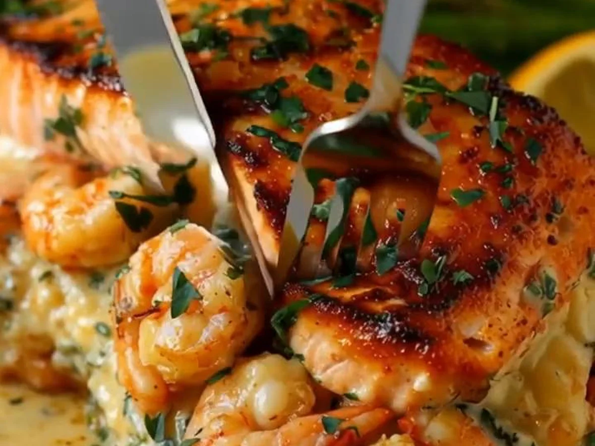 Introduction Imaginez-vous allongé autour d’une table, les arômes envoûtants d’un plat réconfortant flottant dans l’air : le saumon farci aux crevettes, nappé d’une sauce au beurre citron ail. Ce plat,