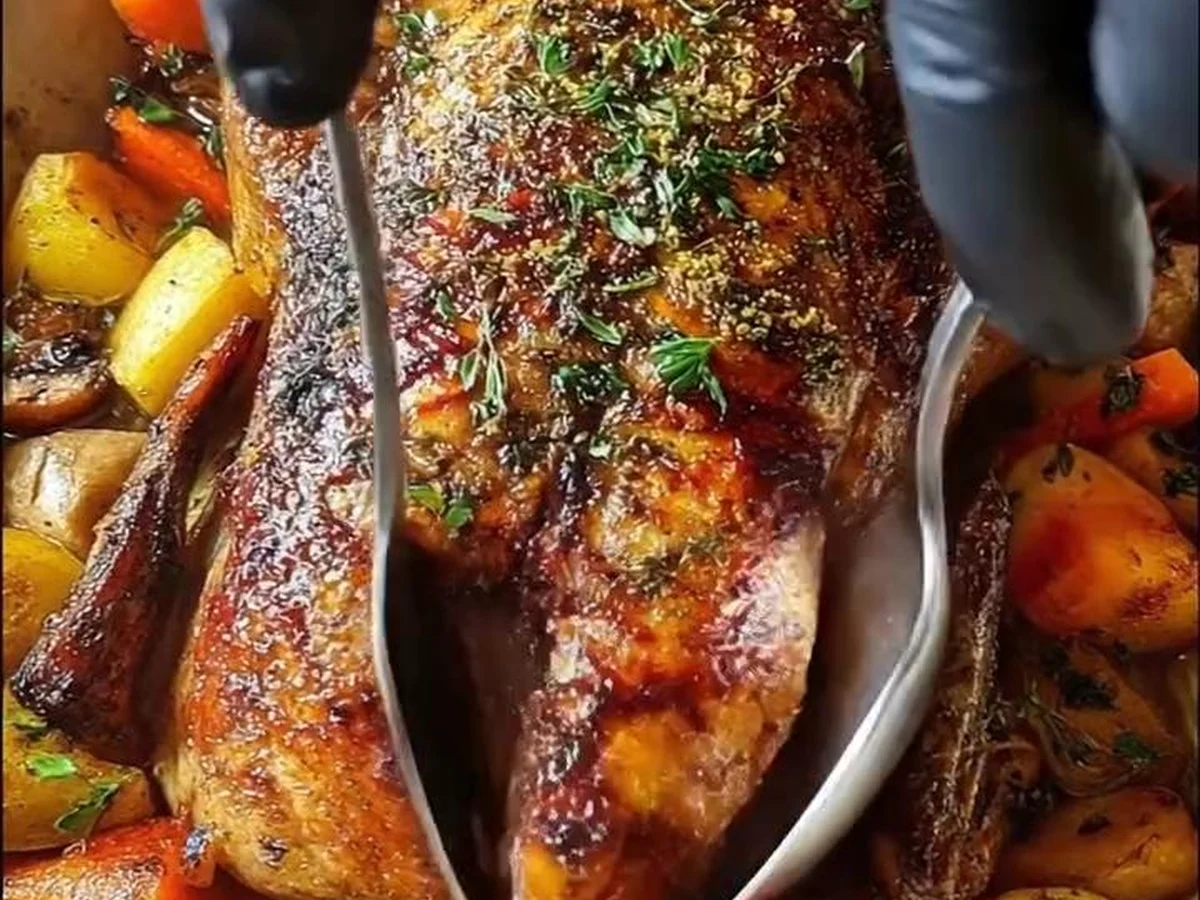 Dégustez votre délicieux Canard Rôti aux Pommes de Terre, Poivrons et Champignons fait maison !