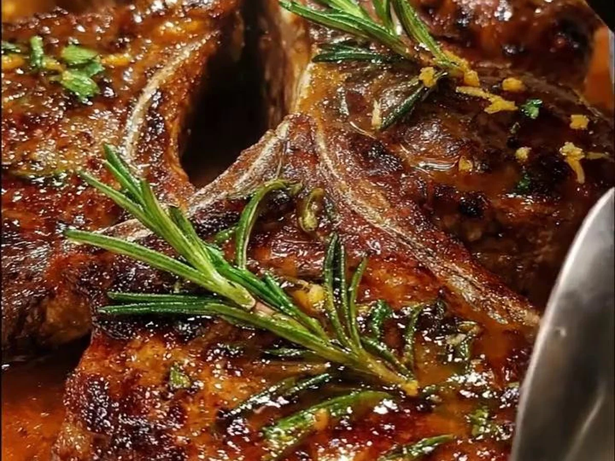 Côtelettes de boeuf au citron et romarin avec sauce brune