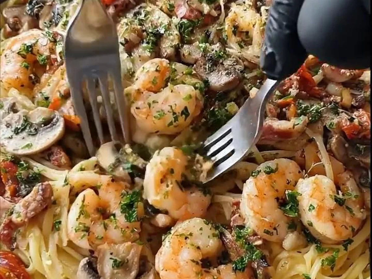 Pâtes à l’Ail avec Crevettes et Champignons