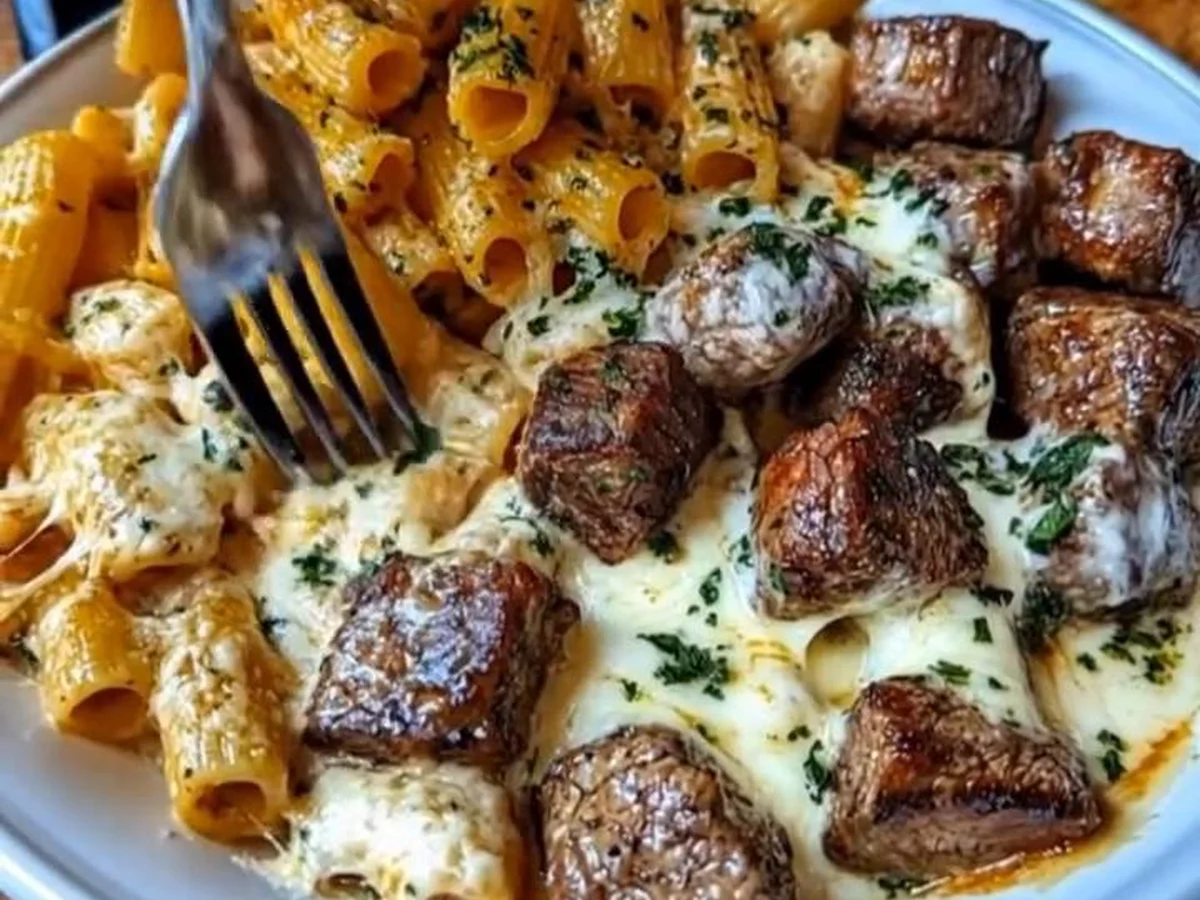 Pâtes Rigatoni au Steak et Sauce Crémeuse de Fromage
