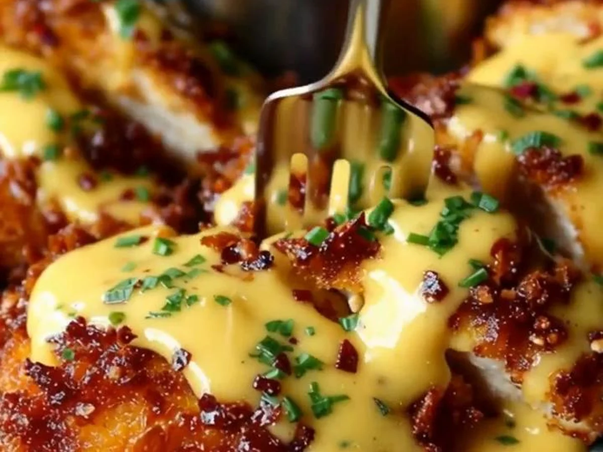Poulet Bretzel Croustillant avec Sauce Moutarde-Cheddar